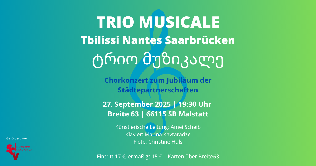 Wer unser Konzert am 5. Juli verpasst hat, hat am 27. September 2025 um 19:30 Uhr in der Breite63, 66115 Saarbrücken die Möglichkeit, Liedern, Klängen und Texten der drei Nationen zu Lauschen.